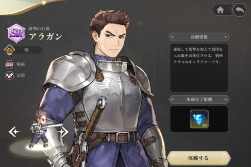 同じ属性または信念を持つ騎士と一緒に編成すると、アラガンの「ホールドスキル」/「特殊スキル」ダメージ量が10%増加する。