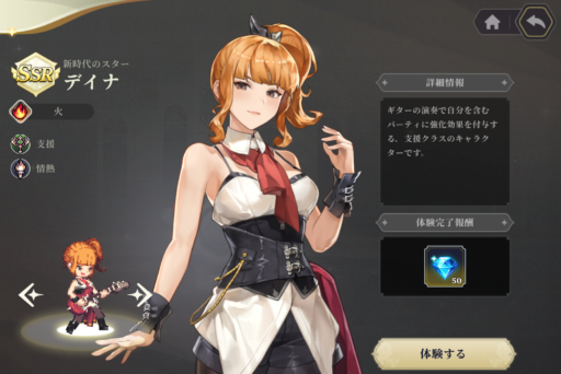 最高のリフを披露しながら音波を放ってダメージを与え、味方騎士のHPを回復させる。
